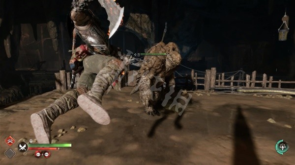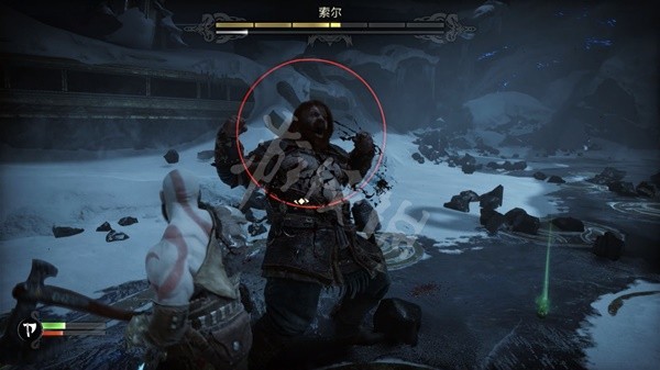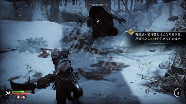 战斗中敌我双方都可以通过特定为对方施加异常状态,按△可以召回斧头 。从生命值条旁边的图标中可以看到持续时间。这里我们可以将斧子 、